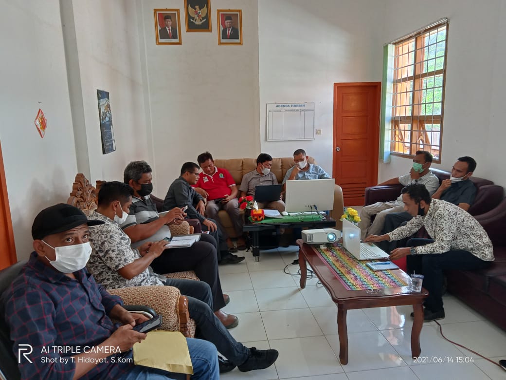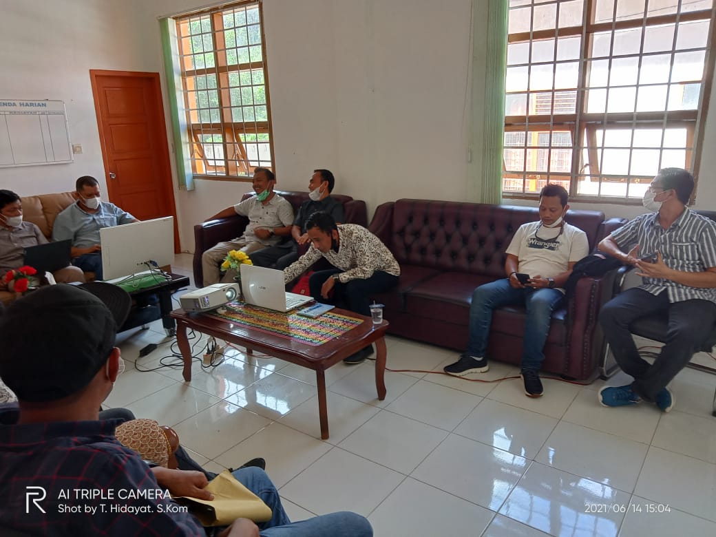 SIMEULUE - Rapat Persiapan Pelaksanaan Pekerjaan Renovasi Gedung Mahkamah Syar'iyah Sinabang yang dihadiri oleh Kontstraktor Pelaksana, Konsultan Perencana dan Konsultant Pengawas sebagai penyedia jasa dan Bapak Maizar, SH selaku PPK dan Musad Al-Haris Pulungan S.HI sebagai PLH Ketua Mahkamah Syar'iyah Sinabang dari pihak Mahkamah Syar'iyah Sinabang membahas berbagai macam agenda rapat seperti presentasi program mutu dsb untuk kelancaran proses renovasi gedung Mahkamah Syar'iyah Sinabang. (14/6/2021)